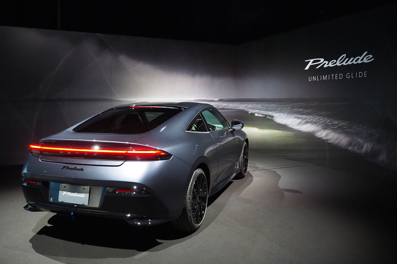 車両は、「ワイド&ローのスムーズなボディーラインにより、スペシャリティースポーツらしいプロポーションを実現。大径タイヤと最適なホイールベースにより、高い運動性が発揮できるようにパッケージングを工夫した。ホンダのDNAである“操る喜び”と環境性能や日常での使い勝手も追求。電動化時代の前奏曲・先駆け(プレリュード)となるモデル」と、その特徴が紹介される。